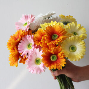Each stem comes with a standard length of 38.5cm (15.2 inch), and we support customizable length adjustment to fit your specific arrangement needs. Crafted from premium polyurethane (PU) material, these faux gerberas feature an ultra-soft touch and moisture-retaining realistic feel that mimics fresh gerbera daisies perfectly, delivering a highly lifelike look and texture.